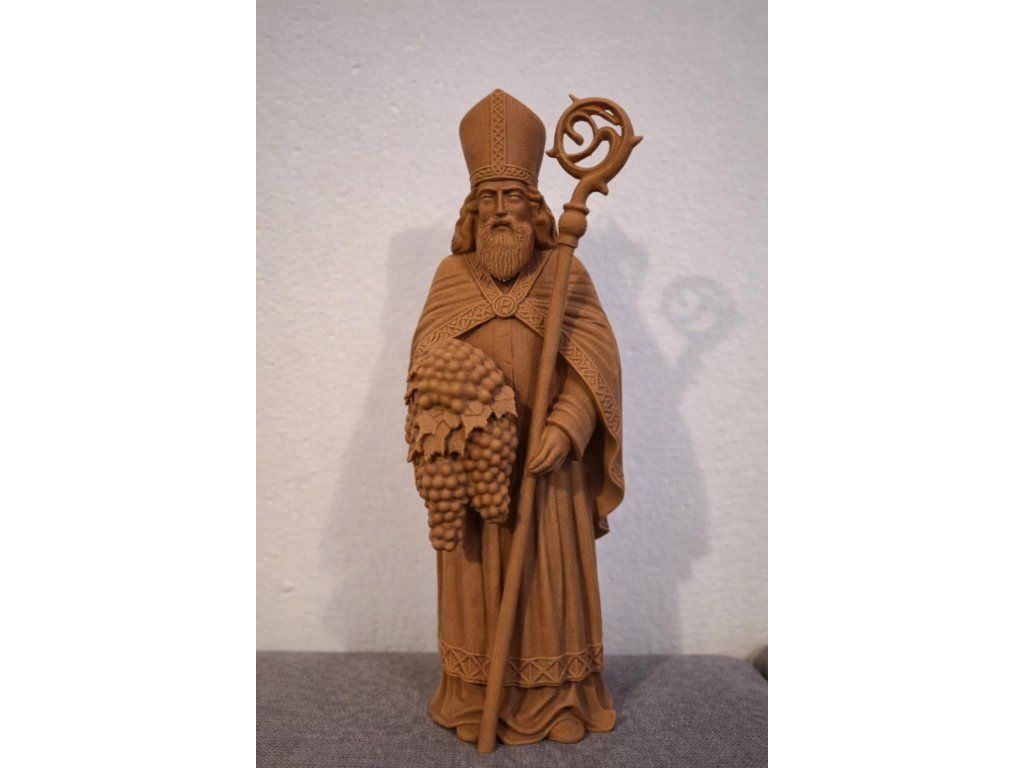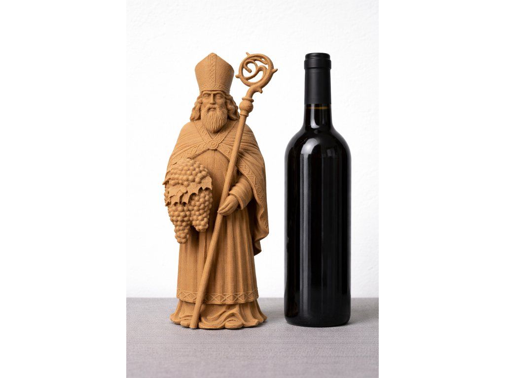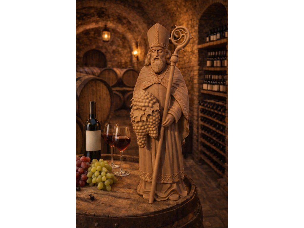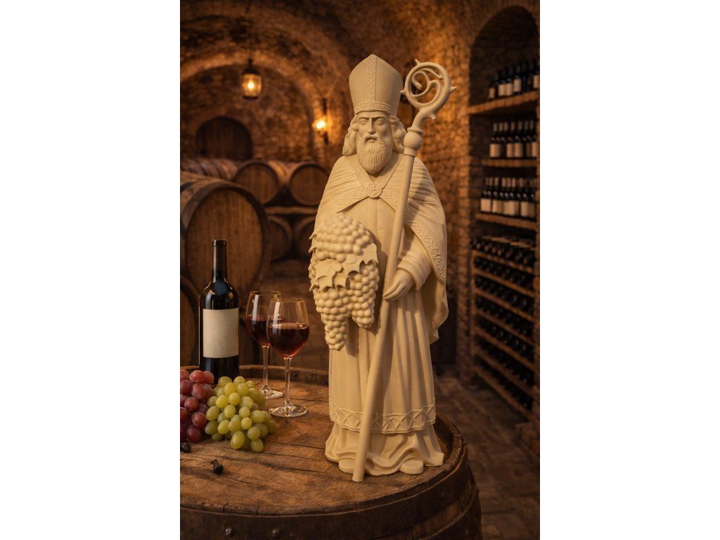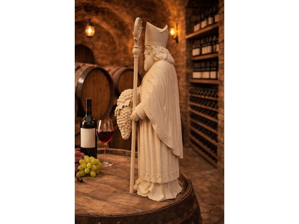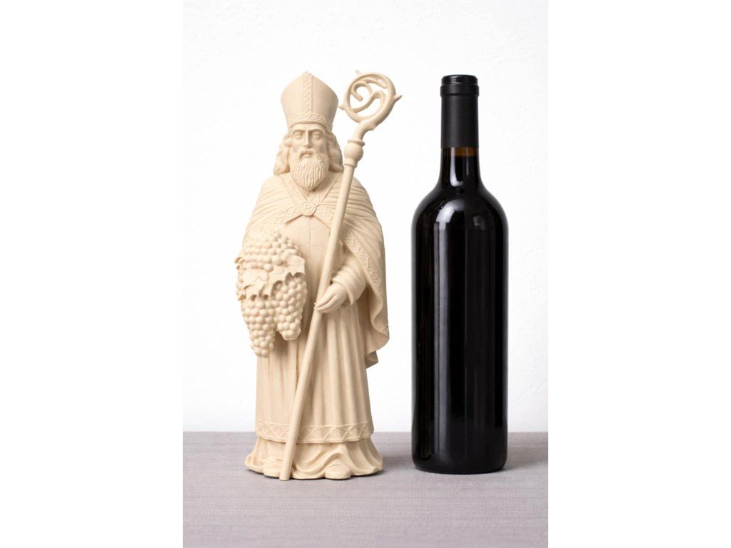 Sv. Urban je tradičně uctíván jako patron vinařů a vinohradníků. Tato detailně zpracovaná postava je ideální dekorací do vinného sklípku, vinotéky nebo jako reprezentativní dárek pro milovníka vína.