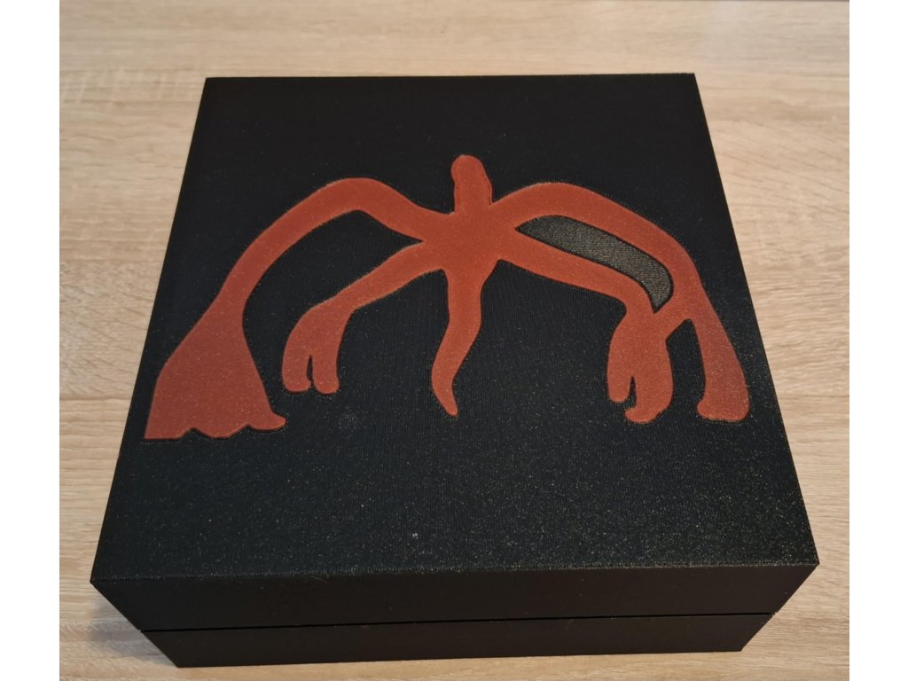 Otevřená vitrínka s panty samostatně pro figurky z Kinder Joy.Figurky nejsou součástí.Rozměry:20x18x6.5cmMateriál PLA